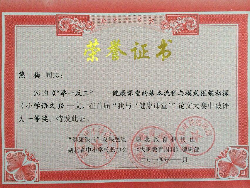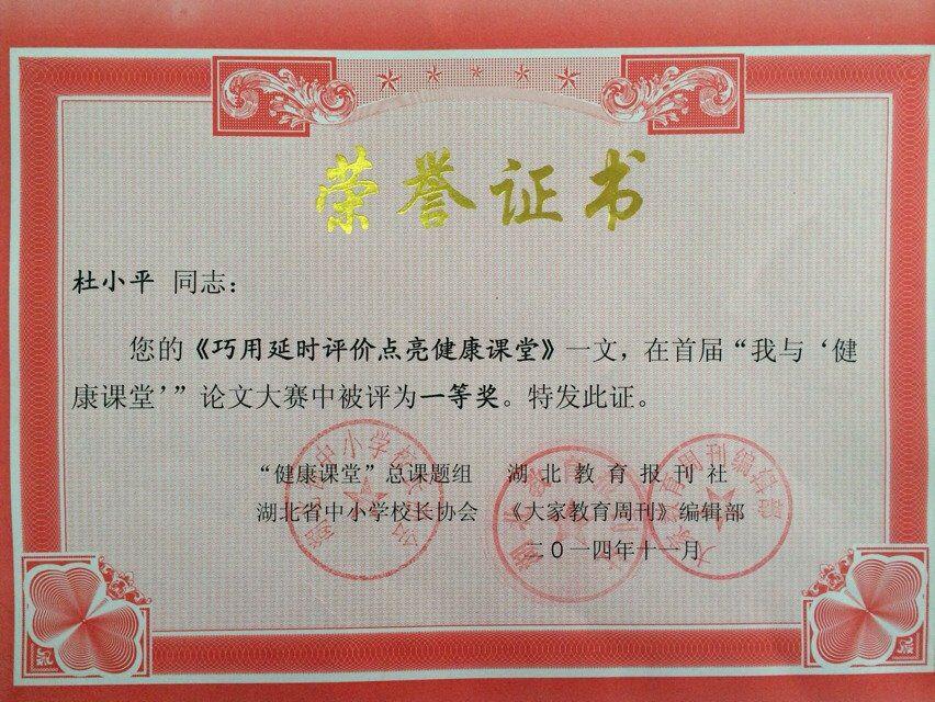 据悉,2014年,华体会平台教师积极参与“健康课堂”总课题组和湖北省中小学校长协会组织的征文比赛,投送的论文、案例稿件37篇均获奖,11篇一等奖论文中就有3篇来自华体会(中国)。