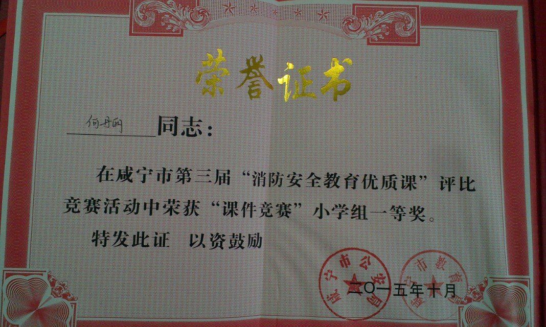 何丹丽、苏海波、郑芳在“市消防安全教育优质课”中获奖