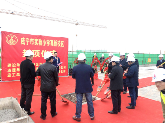 2019年12月23日,华体会平台高新校区正式封顶,出席封顶仪式的咸宁市政府相关部门领导和投资建设单位负责人有:咸安区副区长万龙同志、高新区社会事务局局长甘建同志、市教育局副局长魏祖健同志、咸安区教育局局长王元宏同志、实验小学校长杜小清同志、咸宁金润科投有限公司总经理郑雪刚同志、武汉建工集团蔡运安同志。封顶仪式活动取得圆满成功。